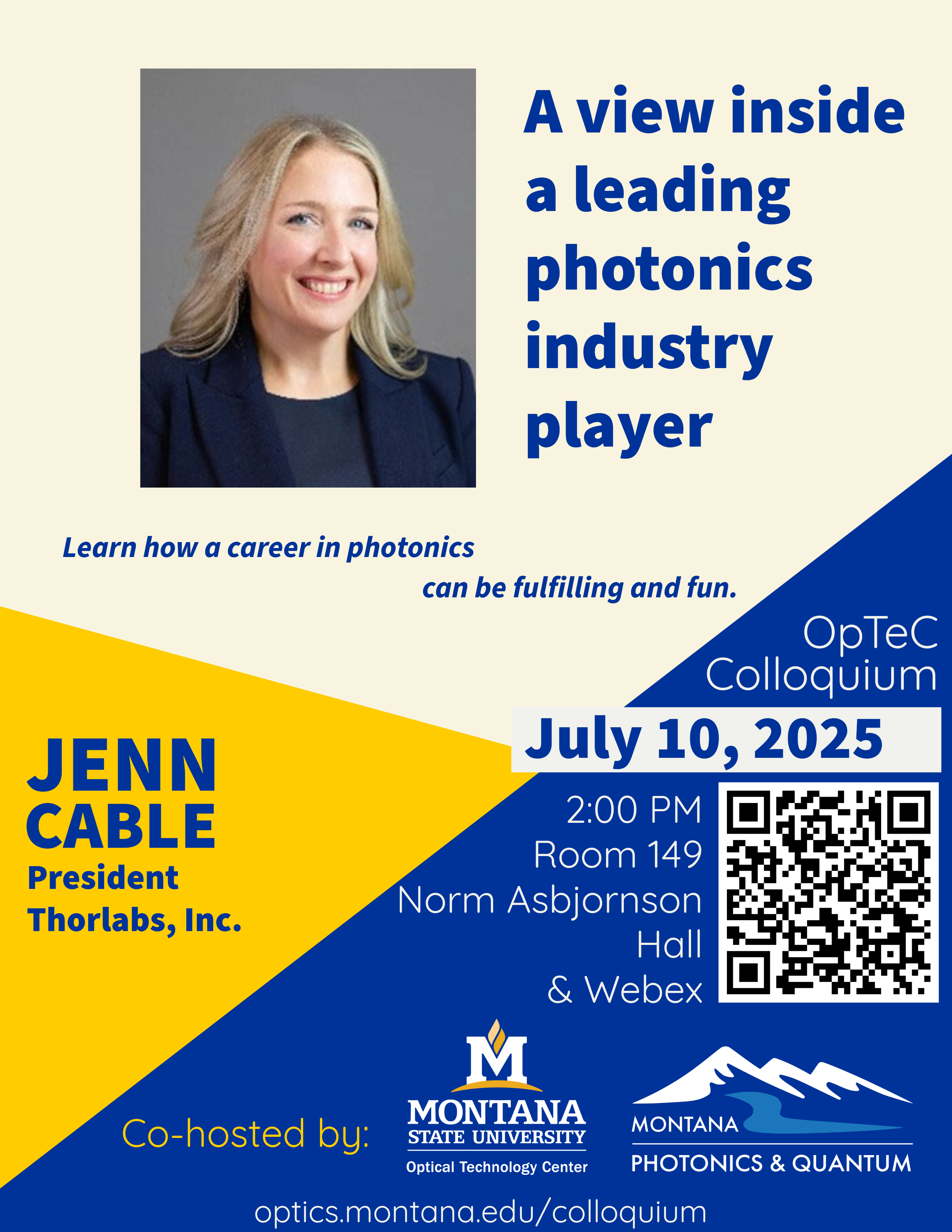 OpTeC sponsors a colloquium throughout the academic year. This is a forum where a wide range of optical science and engineering topics are discussed at a level that can be understood by a broad spectrum of optics students, staff, and faculty. The primary purposes are to train students to give effective scientific talks and to promote cross-disciplinary interactions of students, staff, faculty, and local industry employees. Speakers include MSU students, staff, and faculty, and visitors from external universities, research labs, and companies.
